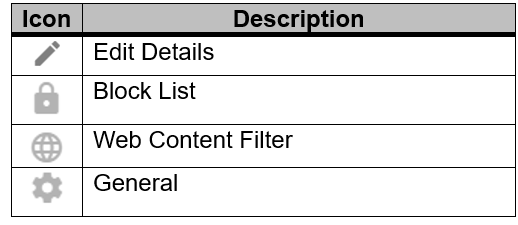 The following is a brief explanation of the icons on the left of the Android Policy screen: