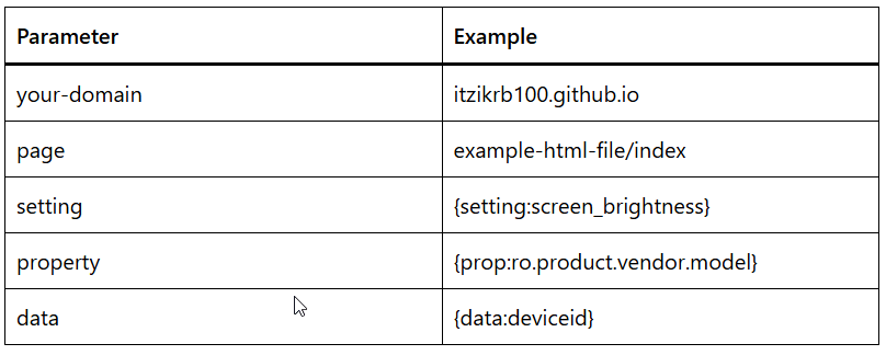 https://your domain/page?setting={setting:xx}&prop={prop:xx}&data={data:xx}