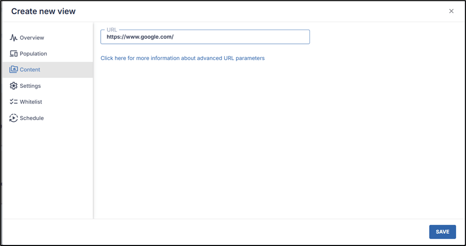 By clicking on the text “Paste your URL to preview” in the Preview screen, you will be redirected to the Content tab, where you can assign the URL to be displayed in the View.