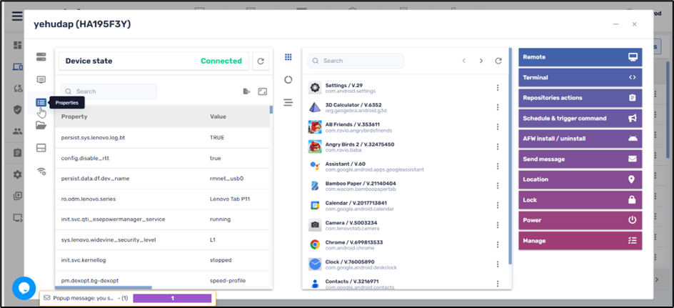 System Properties: The Properties options can include the device’s product brand or model. The properties can be seen in the Device Dashboard.