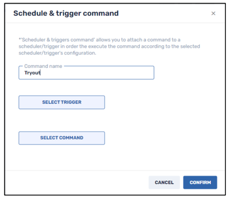 - Supply a command name and click on Select Trigger. The Schedule & Trigger repository opens.