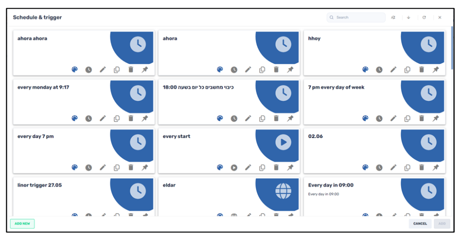 - After you select the desired trigger and set its parameters, click Confirm. The new Schedule & Trigger that you have created will now appear in the repository of triggers.