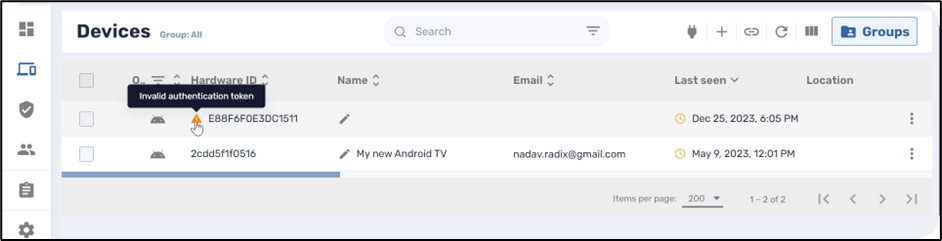 You should reset the device’s authentication token from the Radix Device Manager, to enroll the device on the server again. After taking the necessary steps, you will receive a prompt to confirm the reset. After confirming, the warning icon should disappear.