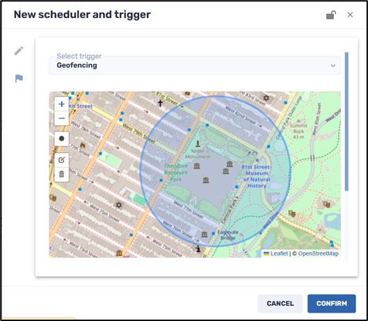 2. Click Confirm. The Geofencing option will be saved in the Schedule and Trigger option.