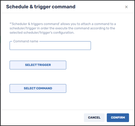 4. Supply a name and description for the Schedule and Trigger Command and click on the Add Trigger icon in the sidebar menu.