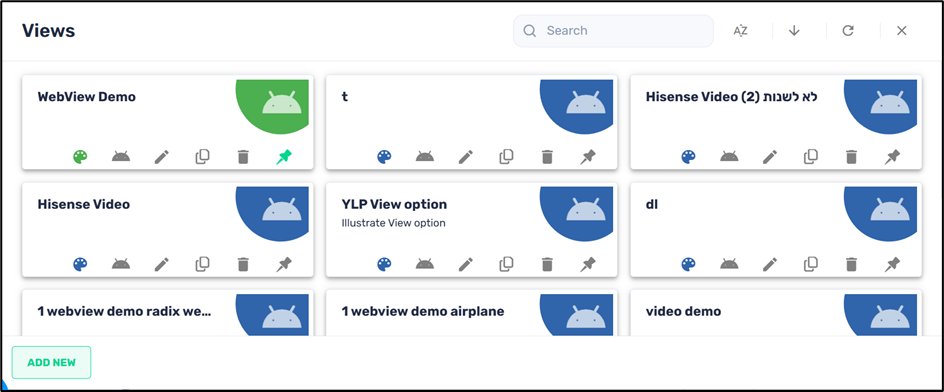 The Views repository item option is a specialized type of kiosk setting. With it, you can specify a list of allowed apps for a remote Android device as well as a single web app URL. For example, you can use the Views command to play a web app consisting of a video that plays in a loop or a particular website that advertises a product.