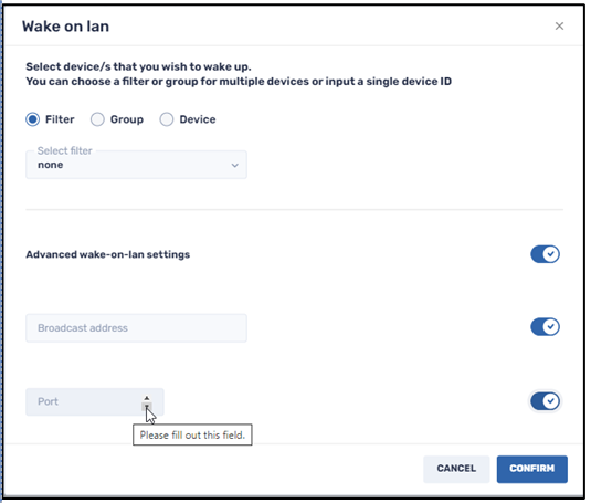 • Port: Here you provide the port of the device sending the Wake-on-LAN call.