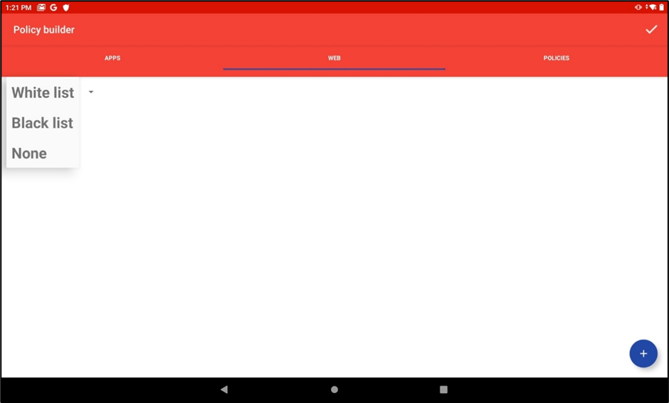 To save changes to the list of apps, URLs, and policies, tap the checkmark in the upper right.