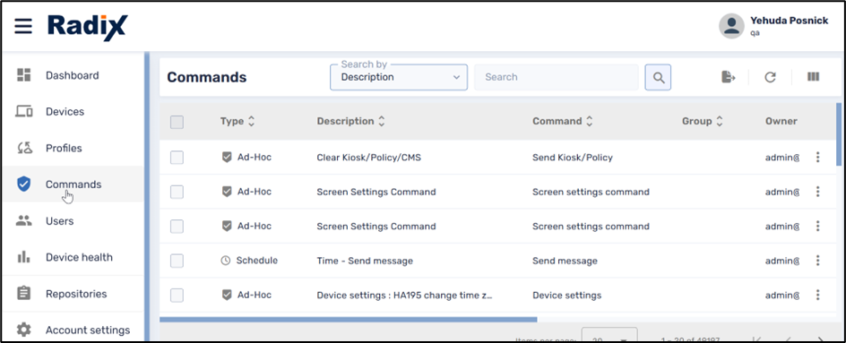 - From the Radix Device Manager, click on Commands to open the Commands console: