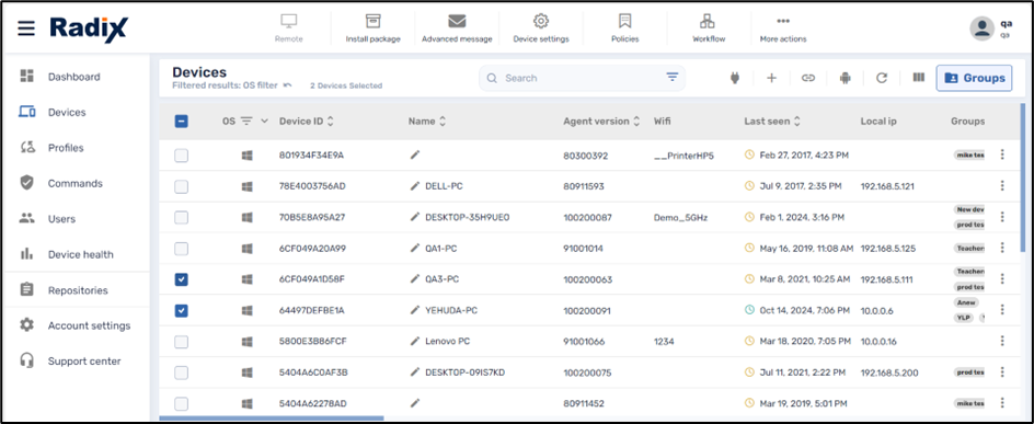 4. From the Devices Console Ribbon at the top of the screen, click More actions.