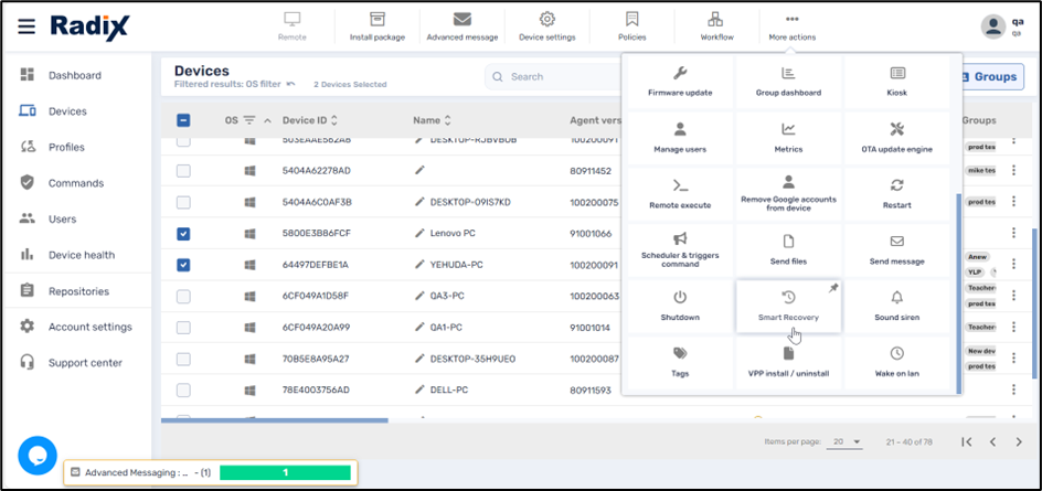Note: This method has the advantage of allowing you to check the checkboxes on several devices and apply Smart Recovery on all of the devices simultaneously.