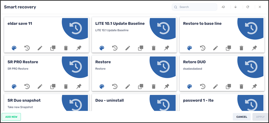The Smart Recovery LITE app allows you to restore a Windows device to a previous baseline state. You can choose between: