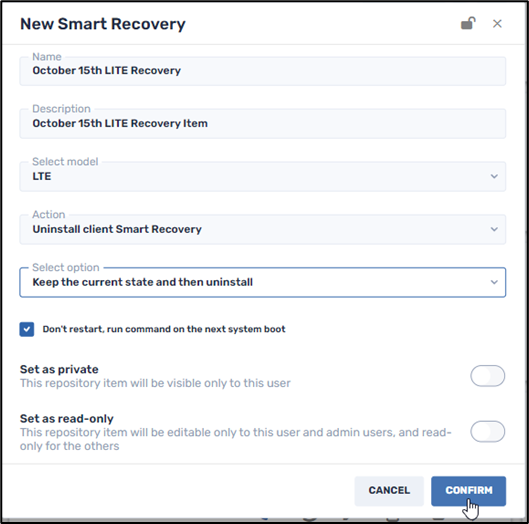 - Checking this box will uninstall Smart Recovery on the remote computer the next time that the remote user reboots their device.
